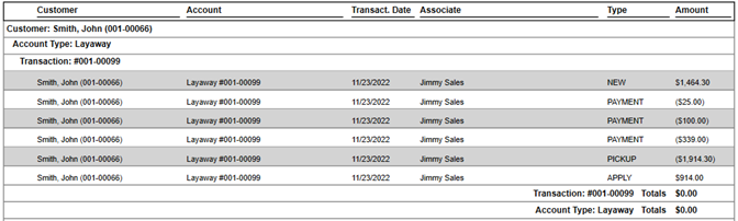 The report screenshot above contains the details on a single layaway.