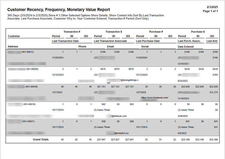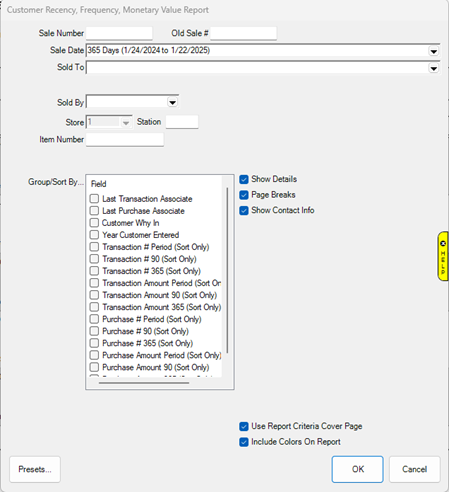- Navigate to Reports > Customers > RFM. The Customer Recency, Frequency, Monetary Value Report window will open.