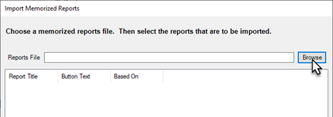- Now, click Supervisor > Import Memorized Reports and then click the Browse button in the top right.