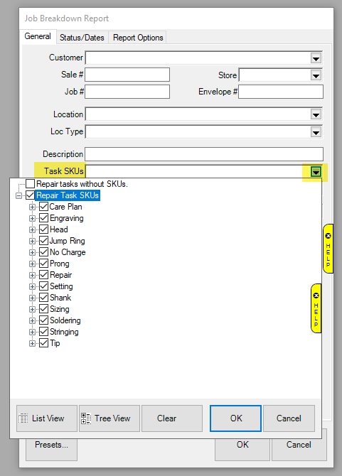 - Select if you want to group your report by job #, customer, jeweler, intake associate, etc.