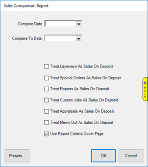 - Click Reports > Managements > Sales Comparison. The Sales Comparison Report window will appear.