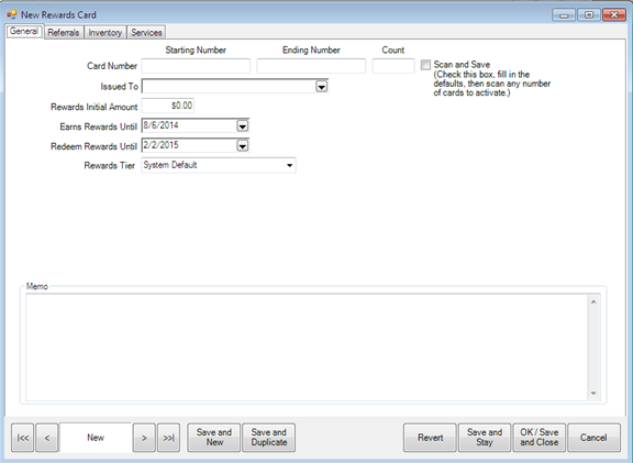 - From the Customer menu, select Rewards > Activate.  The Edit Rewards Card screen will appear with the General tab open.