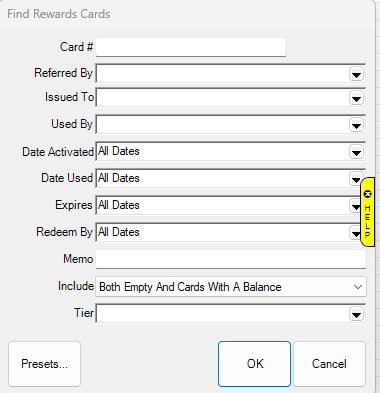 - Select Customers > Rewards > Find, enter your search criteria in the window below
