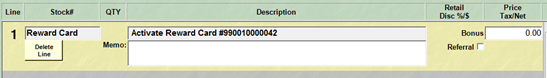 - The initial amount/bonus amount will be taken from your default setup and added to the resulting sale line.  Otherwise, enter the card value.