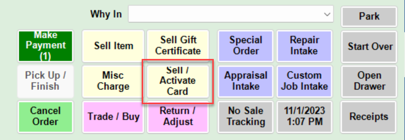 NOTE: If you enabled this feature but still see the former Sell Tender Card button, make sure you have Rewards/Referral Cards set to True in your System Options.