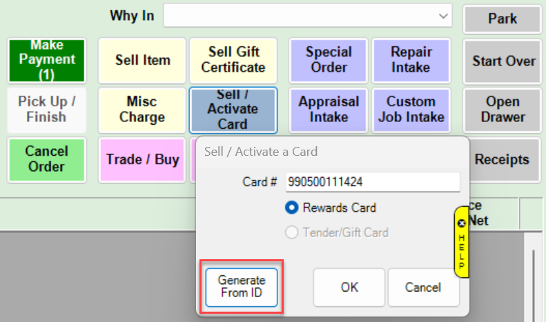 NOTE: This feature is ONLY available for Rewards Cards. You cannot generate a Tender/Gift Card using the Generate From ID button.