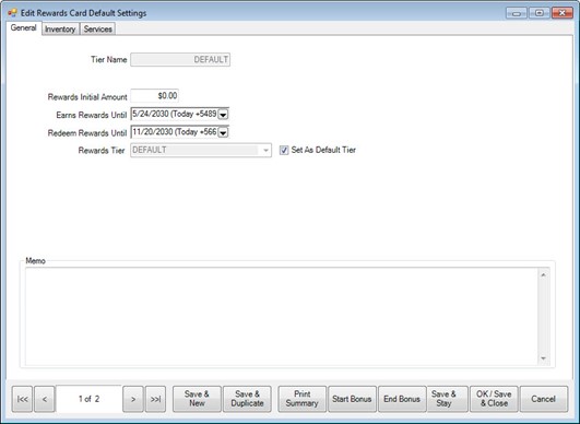 | Rewards Initial Amount | The value that is initially on the rewards card for this tier when it is activated.  At POS, you can change the value when activating a card; however, if it is over the maximum set in System Options, an override will be needed.  If a card is activated at POS as a rewards card, this value is used.  But if the card is activated as a referral card, then the referral initial amount is used.   See the Referrals section for more information. |