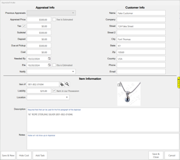 The Appraisal Screen through POS has been reorganized to make locating desired fields a breeze, as well as new buttons that allow you to pull item information directly into the Appraisal form making your Appraisal Intake process faster and more convenient than ever before.