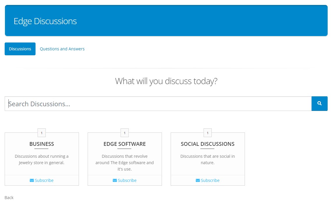 The Discussions forum is designed to allow users to socialize and network with other Edge Users.