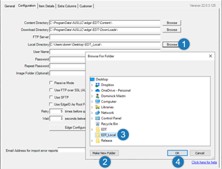 4. Click the Browse button next to Local Directory.  Use the Make New Folder button to create a new folder called EDT Local on your Desktop, then select this folder and click OK.