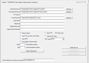 For testing purposes, we are going to set it up to work with local folders.  If you want to test with your FTP site instead, enter your credentials (FTP Server, Username, Password) and ensure Send FTP is checked rather than Send Local.  All other instructions and functionality are the same between local and FTP use.