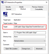 - Go to your Desktop and find the shortcut you just created (EdgeDataTransferClient – Shortcut), then right click and select Properties.