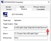 - Make a copy of the EDT Interactive shortcut you just created, then right click on this copy and click Properties.