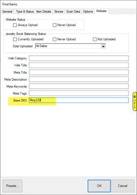 - To find the search option, navigate to Inventory > Items > Find – then select the Website Tab.